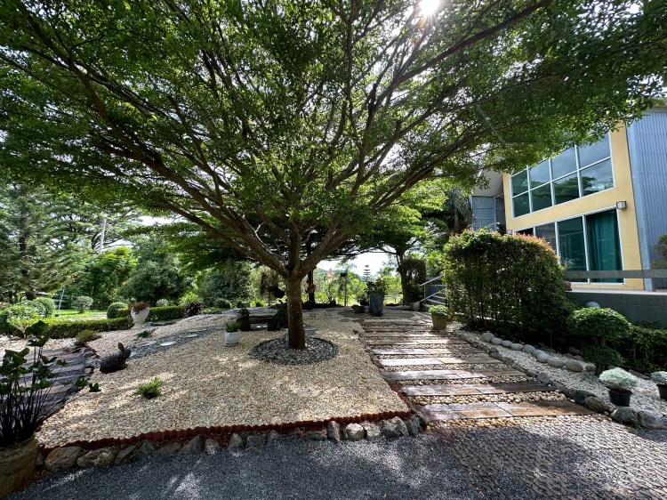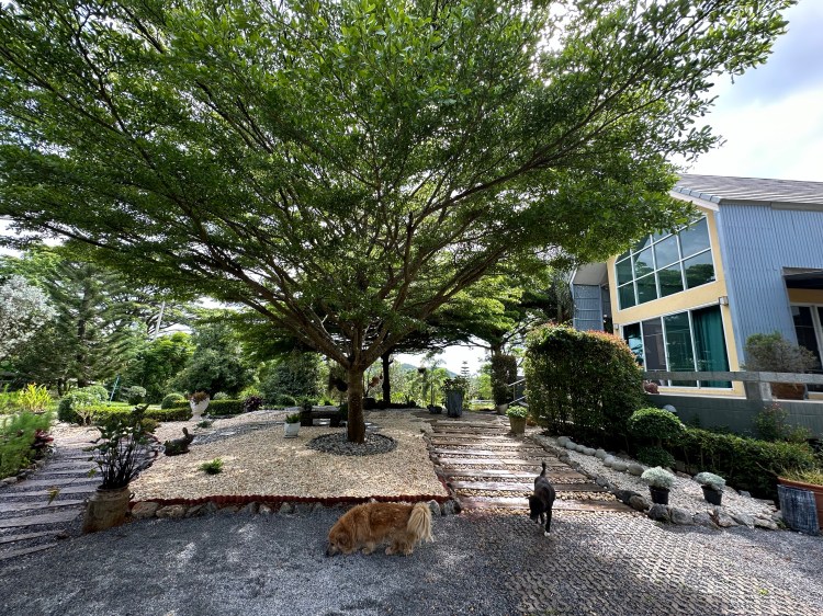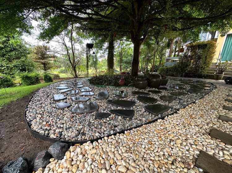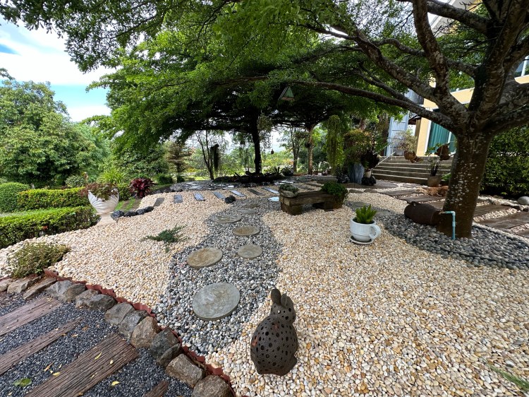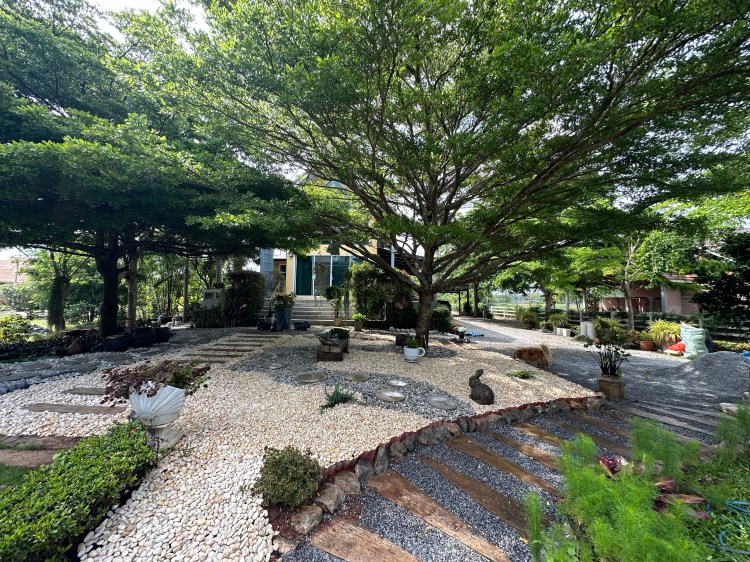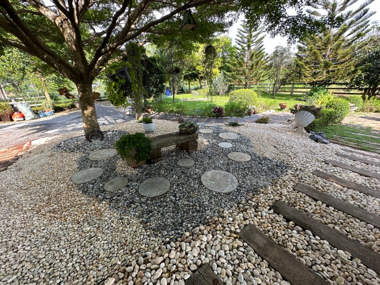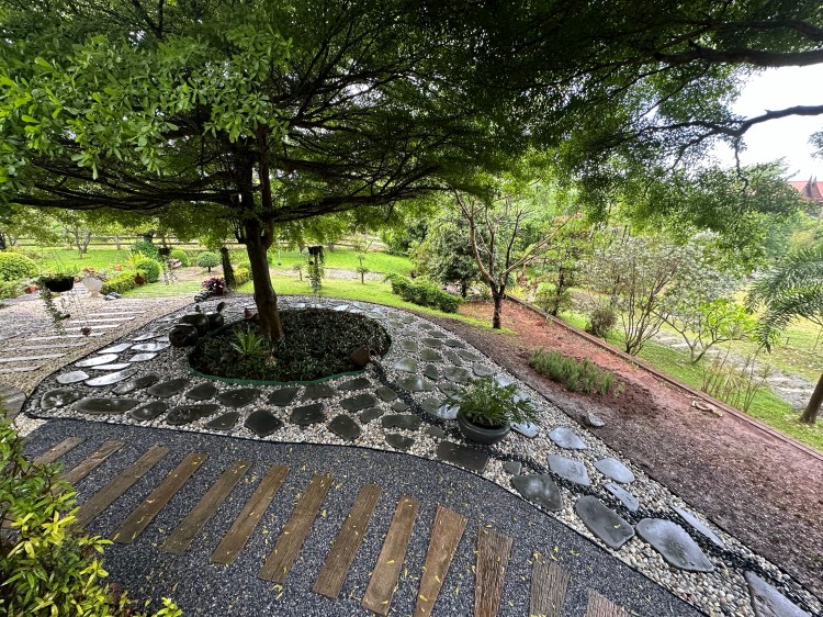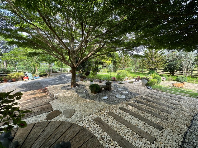 The barn and garden at Siri’s Place in Pakchong, Khao Yai, highlights the beauty and calm of nature. Over the past 10 years, this landscape has undergone several phases of design and development, gradually evolving into its current form, turning into a scenic retreat. The mix of garden plants, trees, and features have grown and provided shade for the barn house, making a peaceful sanctuary.