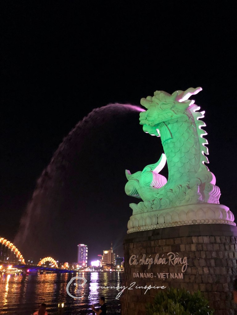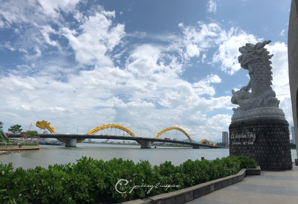 Dragon Bridge is 666 meters in length, a popular spot amongst photographers. The six-lane bridge crosses the Han River and was constructed in the shape of a golden dragon symbolizing power, nobility and good fortune. The bridge is illuminated with colorful LED while it breathes fire and spits out water from 2100 onwards.